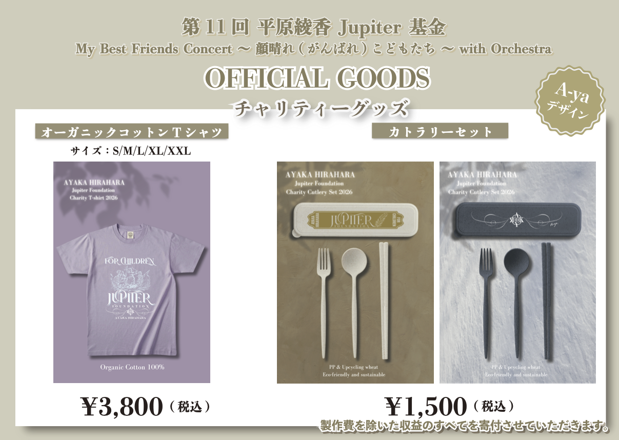 【Goods】「第11回 平原綾香 Jupiter 基金 My Best Friends Concert 〜 顔晴れこどもたち 〜 with Orchestra スペシャルゲスト : 井上芳雄」 チャリティーグッズ公開 (2/19掲載)