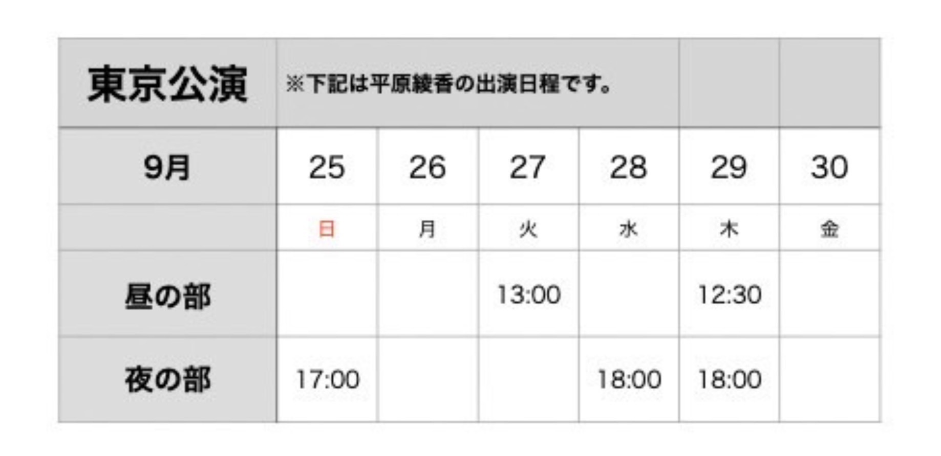 平原綾香の東京公演出演日程は以下の通りです。引き続き応援よろしくお願い申し上げます。