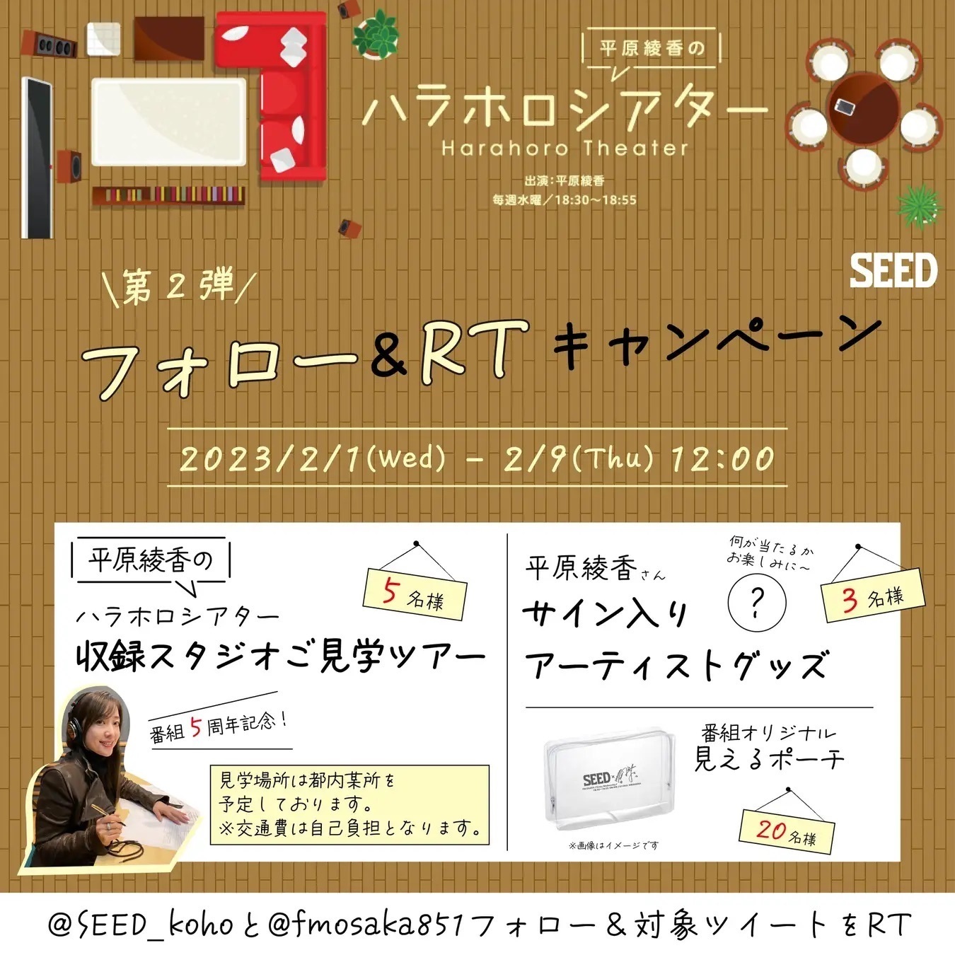 「平原綾香のハラホロシアター」収録スタジオご見学ツアー&番組オリジナル “見えるポーチ” 等